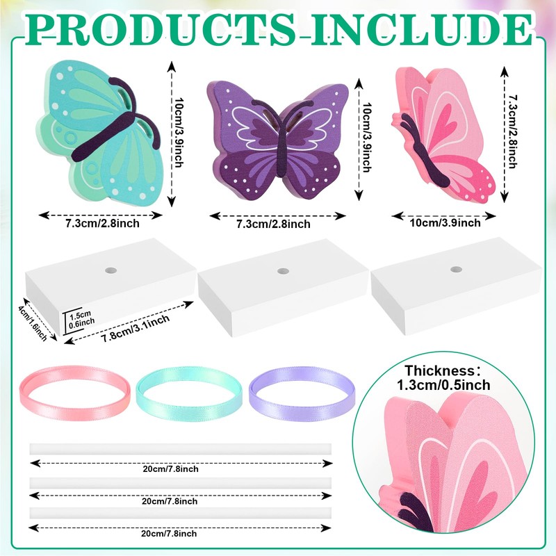 • Detailed dimensions: These wooden butterfly decor at 10.3/10.7/11.2 inches, the square base is 6 cm/2.4 inches. Enough to meet your spring home decoration needs.