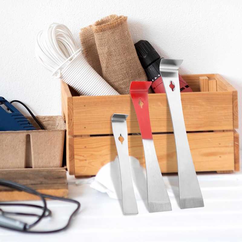 - Complete 3-piece toolkit: Includes large silver (10.23"), compact silver (6.69"), and red (9.25") pry bar set, essential for automotive repairs, home renovations, and detailed craft adjustments