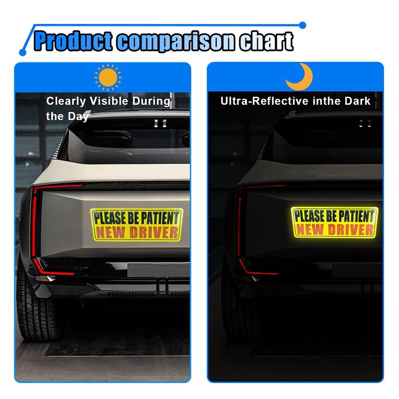 - 【Reflective Material】: The student driver car magnet sticker is made of high-quality powerful magnets and highly reflective materials, waterproof, heat-resistant, fade-proof, and highly magnetic, even in dimly lit, foggy, and stormy weather environments, its reflective ability can instantly attract attention and add a solid guarantee to your driving safety.