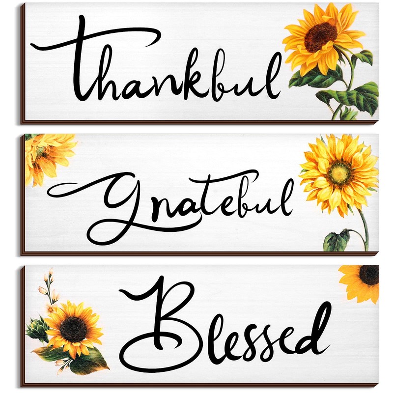 3 Pcs Sunflower Gifts Sunflowers Home Decor Thankful Grateful Blessed Wall Decor Sunflower Kitchen Decor Rustic Farmhouse Sunflower Hanging Wall Signs for Fall Thanksgiving Christmas