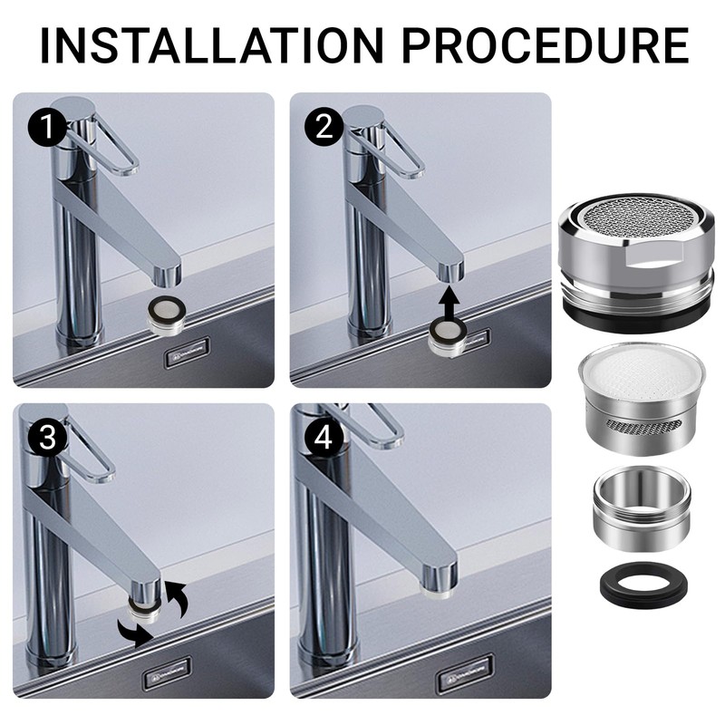 - Easy to Use: Our faucet aerators for the kitchen are easy to install and remove, you can fix or install the tap aerator with a wrench, including gaskets to prevent water leaks. You can easily remove the tap filter head anytime to clean.