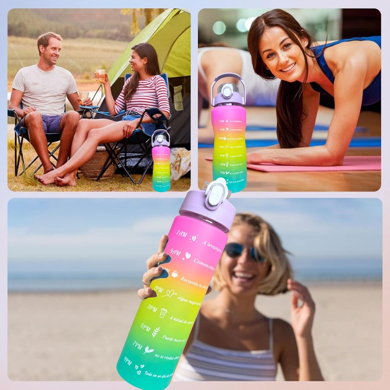 - ✅【Ideal Gift Set】 The motivational 32oz water bottle fits most cup holder, which make a perfect travel companion. 2L Portable Water Bottle can offers enough daily water intake. The motivational water bottles is ideal for hiking, cycling, biking, camping, running, Yoga or any other sports at home, the gym and in the office. Also it is a best gift for family, friends.