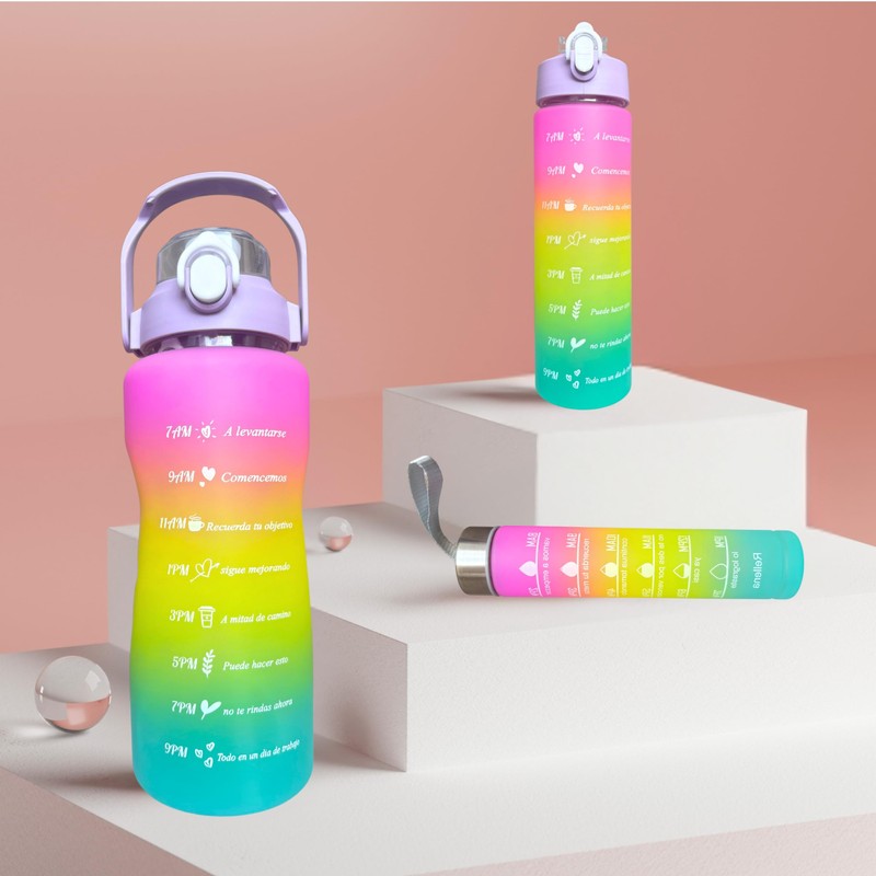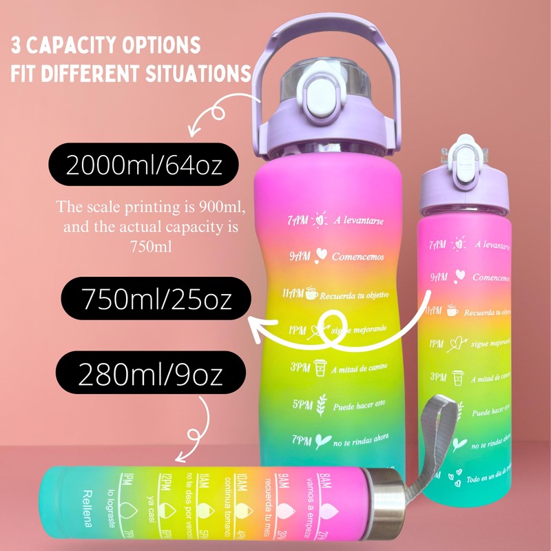- ✅【GREAT VALUE Water Bottles SET】The package includes 3 pack motivational water bottles ( 64 oz, 32 oz, 10 oz ) , featuring motivational quotes and easy-to-read capacity markers on the back, You can now not only track your daily water intake at ease, but also encourage you to drink enough water.