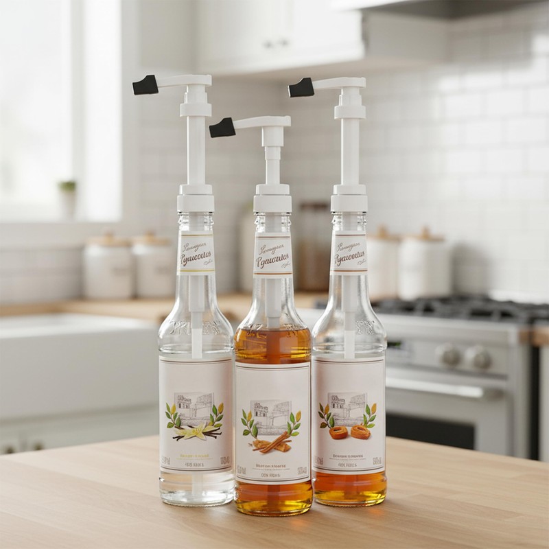 • High-quality syrup pump for monin 750ml glass bottle pump ensures smooth and precise dispensing of coffee syrup, skinny syrups, and flavored syrups like monin pumpkin spice syrup.