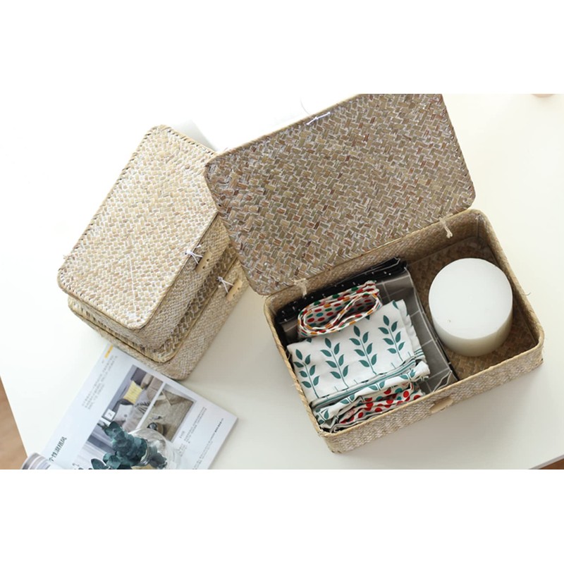 Neatly hand-woven natural seagrass baskets with lid, help you keep important things in one place and make your home clean.