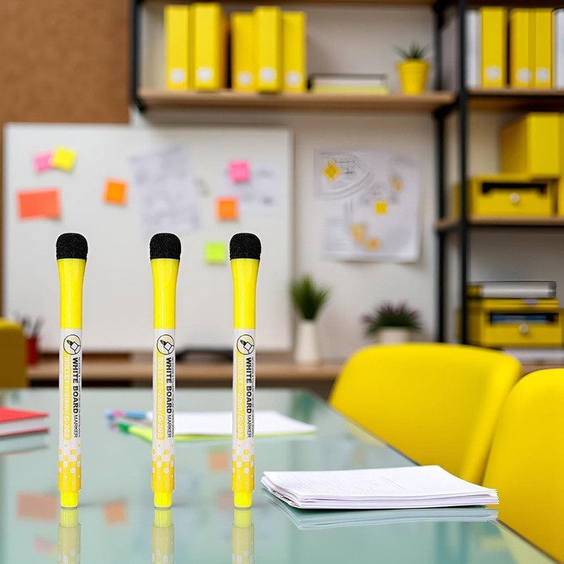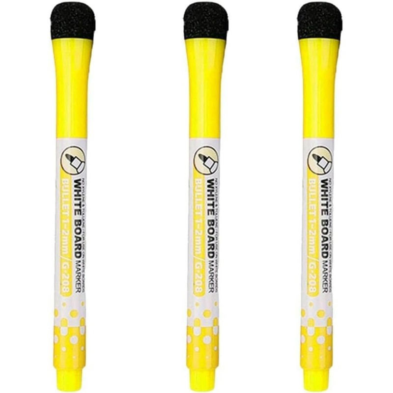 3 Pcs Yellow Magnetic Whiteboard Markers,Magnetic Pen Writing Drawing Erasable Board Marker Office Supplies Erasable Whiteboard Pen Dry Erase and Wet Erase Markers and Highlighters
