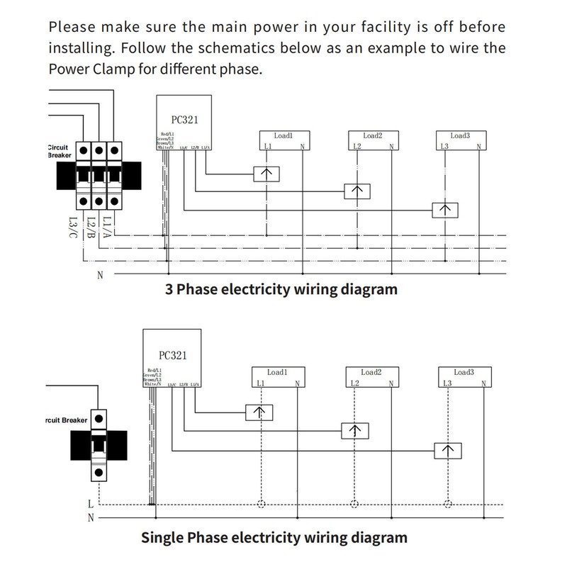 The power clamp must be installed and repaired by a qualified person, do not touch the terminal of the device during the test, and turn off all power to the device before installation to ensure your security.