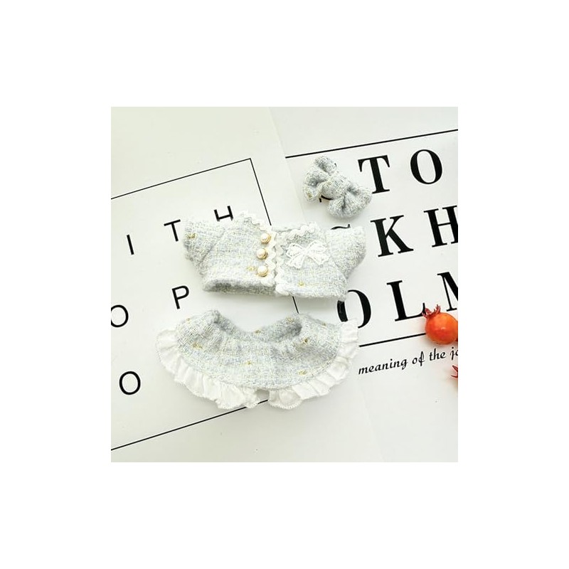 • 【Elegant 3-Piece Fashion Set】 Dress up your cherished 17cm plush doll with this complete outfit: featuring a stylish and chic mini skirt, a coordinating top, and an adorable matching bow hair clip. Perfect for creating a sophisticated look