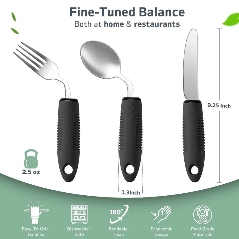 - VERSATILE ADAPTIVE CUTLERY: Suitable for various conditions including Parkinson's, arthritis, hand tremors, and limited dexterity. Enhances independence and dignity during meals.