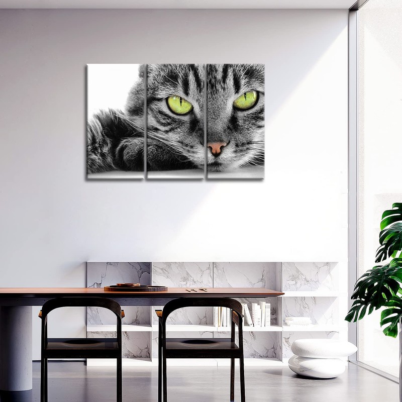 Cat Wall Art Painting 3 Piece Black and White Green Eye Cat Pictures Prints On Canvas Animal The Picture Decor Oil for Home Modern Decoration Print