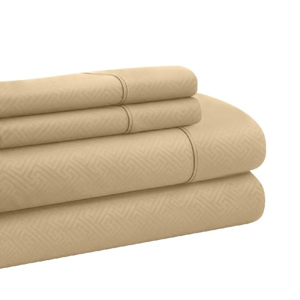 3 Piece Casual Super Soft Fabric Microfiber Sheets Twin Xl, Beautiful Embossed Geometric Design 16" Deep Pocket Taupe Brown Bed Sheet Set, Durable Comfortable Warm Cozy Comfy Wrinkle Free Luxury Sheet