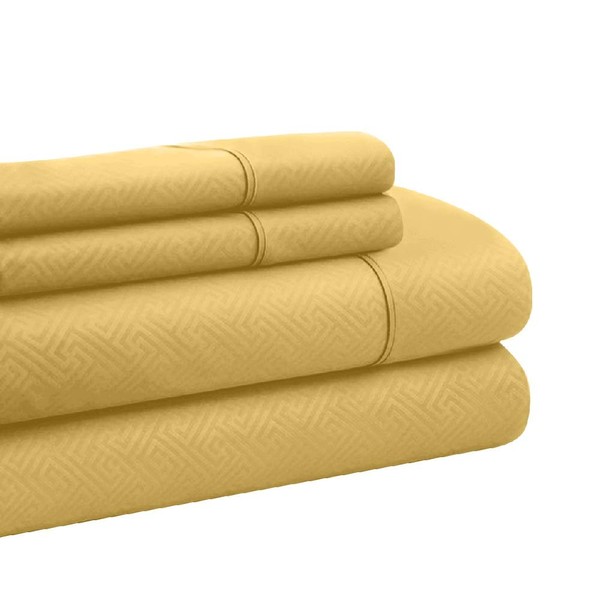 3 Piece Casual Super Soft Fabric Microfiber Sheets Twin Xl, Beautiful Embossed Geometric Design 16" Deep Pocket Yellow Gold Bed Sheet Set, Durable Comfortable Warm Cozy Comfy Wrinkle Free Luxury Sheet