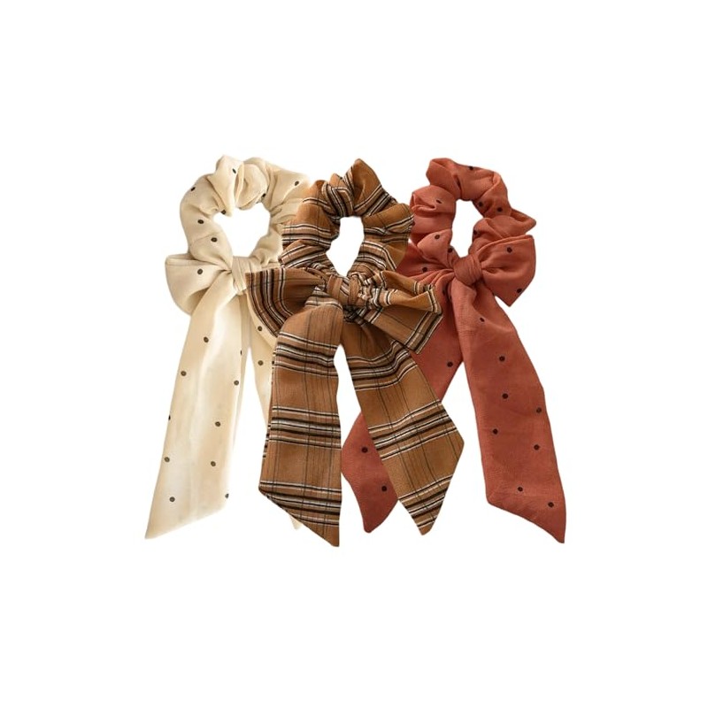 3 Piece Chiffon Bow Scrunchie Set (Beige, Brown, and Burnt Sienna)
