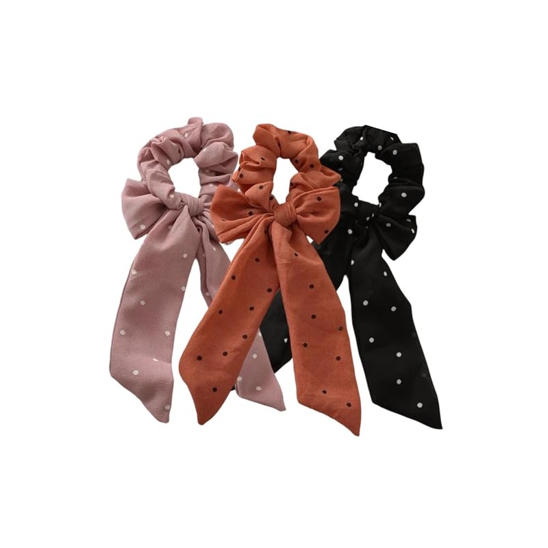 Try these trendy bow scrunchies, a popular Korean style hair accessory. These 3-piece sets feature a variety of colors and patterns. Crafted from lightweight chiffon, these scrunchies come tied into a chic bow, but can be untied and worn straight for a sleek look. Versatile and fashionable, they add a touch of effortless style to any outfit. With their comfortable and secure fit, these scrunchies keep your hair in place all day long. Embrace the latest hair trend and elevate your look with this must-have accessory set.