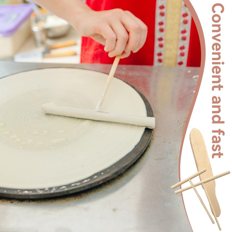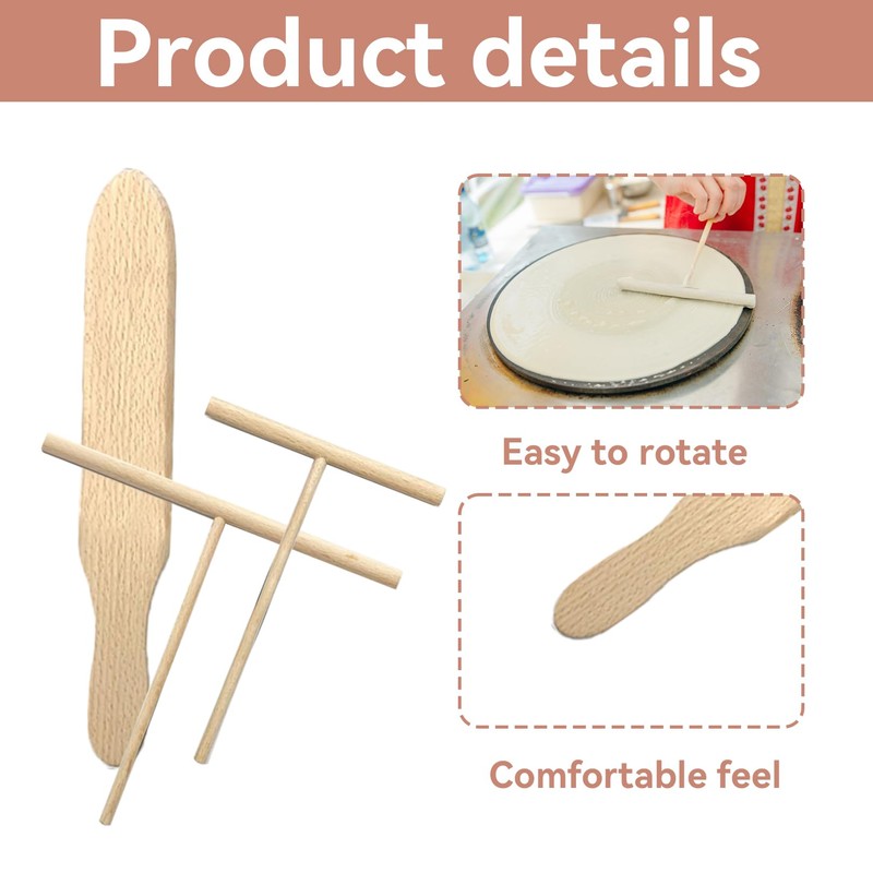 - PRODUCT SET AND SIZE Our crepes making kit is made of high quality beech wood. It includes a 25 cm x 4 cm beech shovel and two T-shaped distributors in sizes 12 cm x 16.5 cm and 18 cm x 16.5 cm. This combination of sizes gives you versatile options when preparing crepes and pancakes.