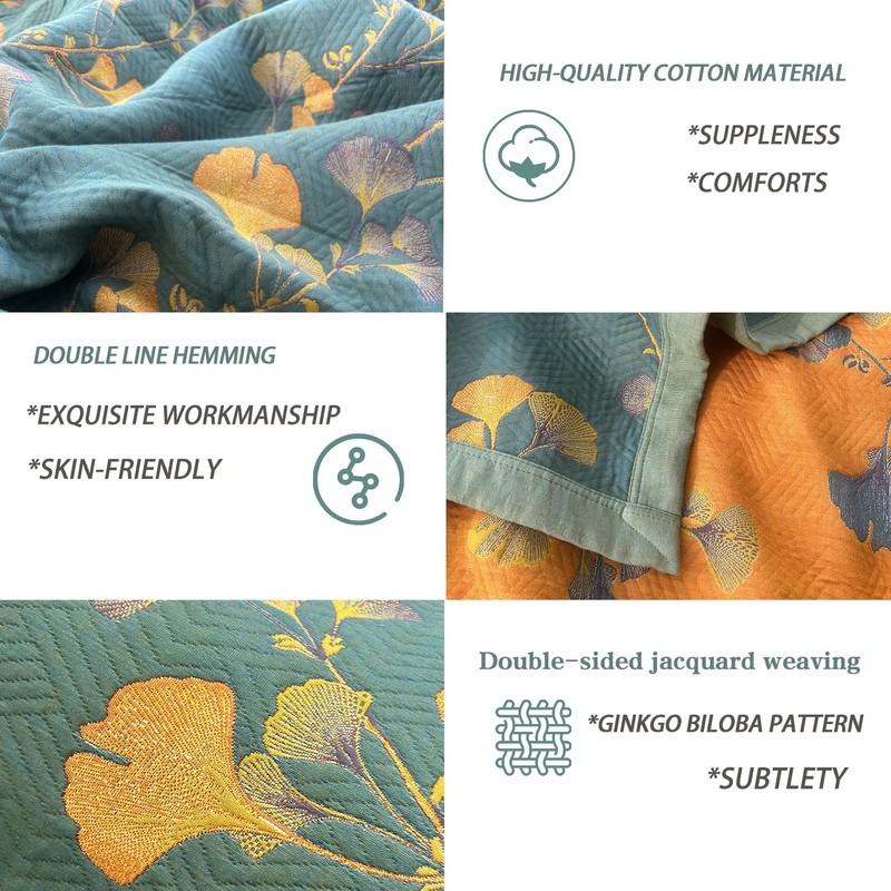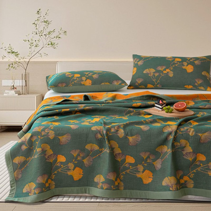 - 【UNIQUE COVERLET SET】Soft and comfortable multi-layered construction, one side is dark green with ginkgo leaves pattern, the other side is orange with ginkgo leaves pattern. Tight stitching and seams are durable and protect the inner filling, the sophisticated design will refresh your bedroom and bring life to a dull room.