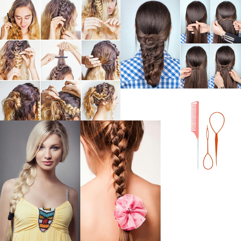 - Complete Hair Braiding Kit for All Styles.This 3-piece hair braiding set includes everything you need to create stunning braided hairstyles. Whether you're a beginner or a pro, the kit comes with a braiding hook, detangling comb, sectioning clips, and hair ties, making it perfect for French braids, Dutch braids, fishtails, and more.