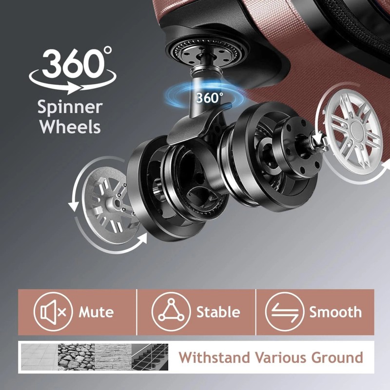 • Features: Carry On, Clothing Compartment, Hardcase, Locking, Lightweight, Spinner, TSA Approved, Upright, Water Resistant, Wireless Chargers
