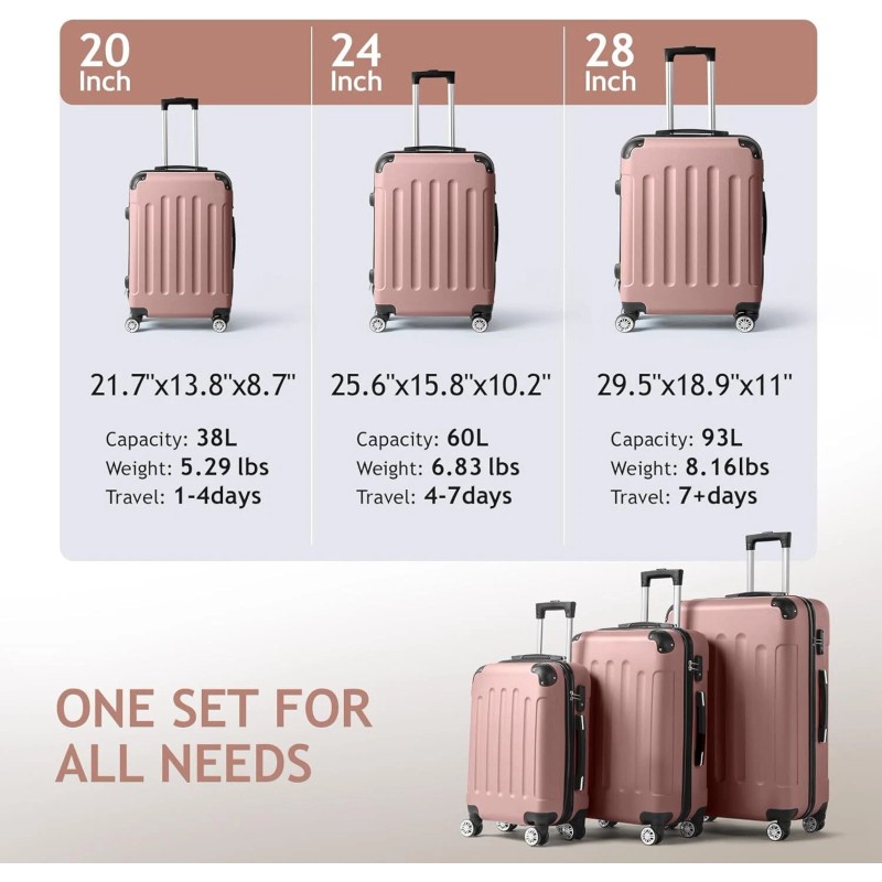 3-Piece Luggage Set Travel Lightweight Suitcases with Rolling Wheels, TSA lock