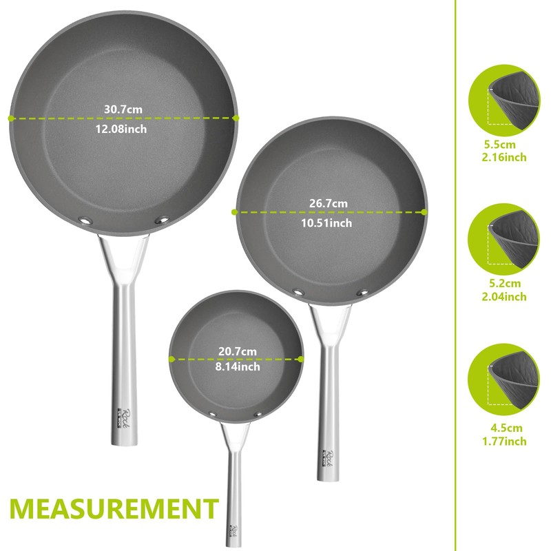 - Create Culinary Haven:Unleash your inner chef and experiment with new recipes! Crafted with precision, these frying pans ensure even heat distribution, making them suitable for electric, ceramic, and gas cooktops