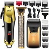 - 3-Piece Professional Blonde Hair Clipper & Trimmer Kit for Men - USB-Rechargeable Barber Set Featuring LCD Display, Adjustable Blade Hair Clippers, and Professional Men's Trimmer