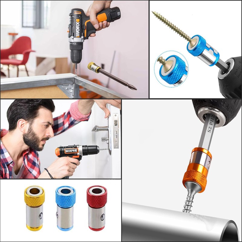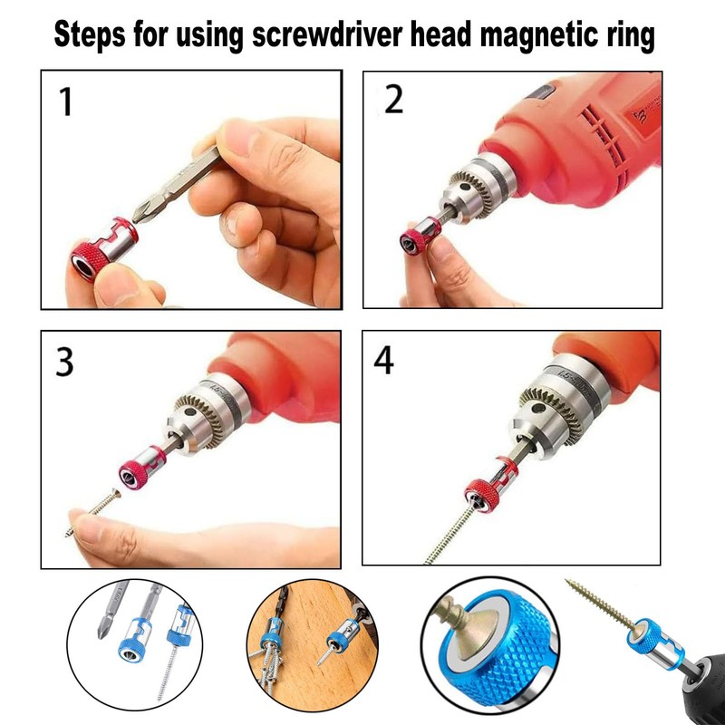 - Easy to use: Simply insert the screwdriver head into the magnetic ring to immediately use the appropriate drill bit. Place the screw on the drill bit, and the magnet will automatically attract it, making it easy to pick up the screw and improve efficiency