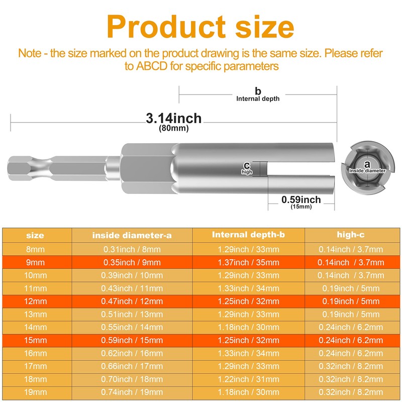 • Wide Use It can be used with 9mm, 12mm, 15mm hex nut drive and is very suitable for installing anti hurricane blinds or other items. It can fasten or loosen wing nuts, bolts, C-shaped hooks, Q-shaped hooks and eye hooks quickly and effectively.
