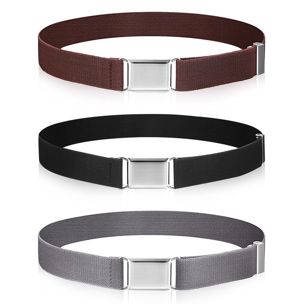 3 Pieces Kids Toddler Elastic Magnetic Belt Adjustable Buckle Stretch Belts with Silver Square Buckle for Boys Girls