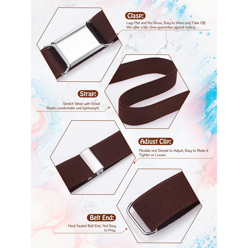 - Quality material: our adjustable buckle stretch belts are made of quality elastic material with easy to use magnetic buckle closure to allow for independence, which are durable, soft and not easily deformed, light in weight, and easy to store and carry when going out
