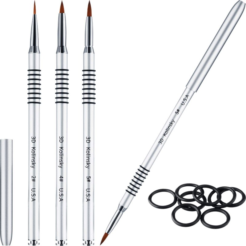 Patelai 3 Pcs Kolinsky 3D Nail Art Brush Set Size 2/4/5 Acrylic Nail Art Brush with Silver Metal Nonslip Grip Handle Polish Cleaning Manicure Tools for Women Acrylic Sculpture Application