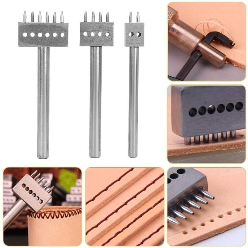3 Pieces Punch Tools DIY Stainless Steel Flat Chisel Leather Chisel DIY Leather Hole Punch Leather Craft Tool Kit for Sewing Porous Leather Punch (6 mm)