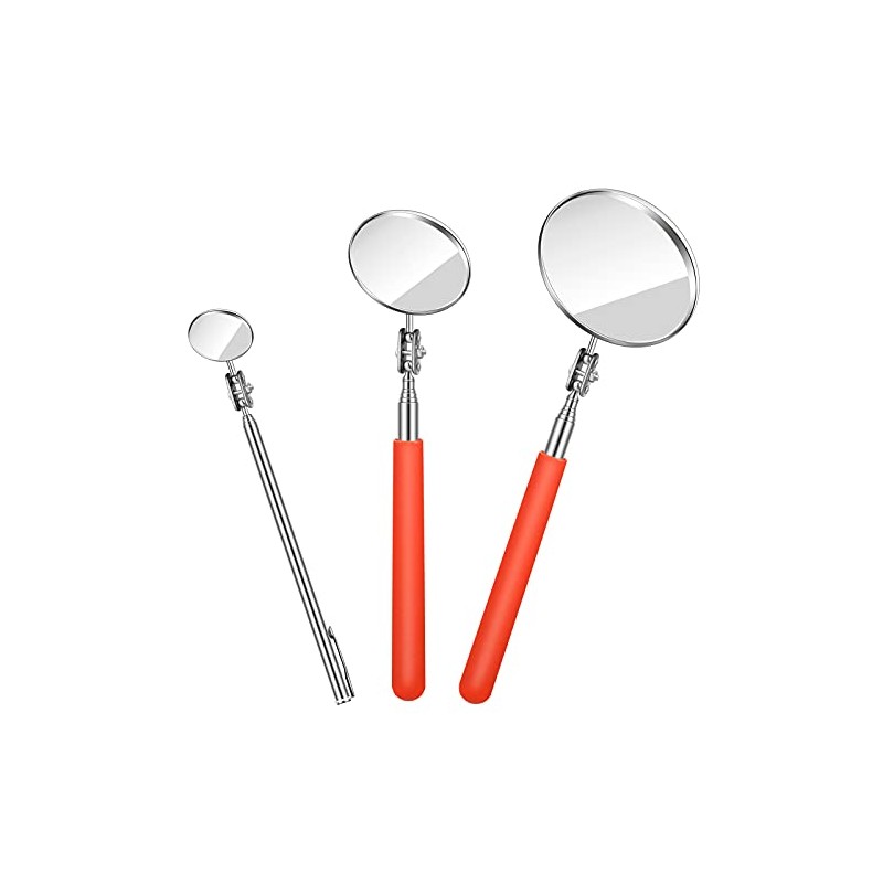 - Easy to operation: this round inspection mirror is good for tool manufacturers, mechanics, inspectors, dentists, makeup artists, and mechanics to enter areas, corners, and crevices that are difficult to reach; The telescopic rod is easy to extend and retract, and the rotating neck mirror allows you to adjust the position of the mirror and observe each small area