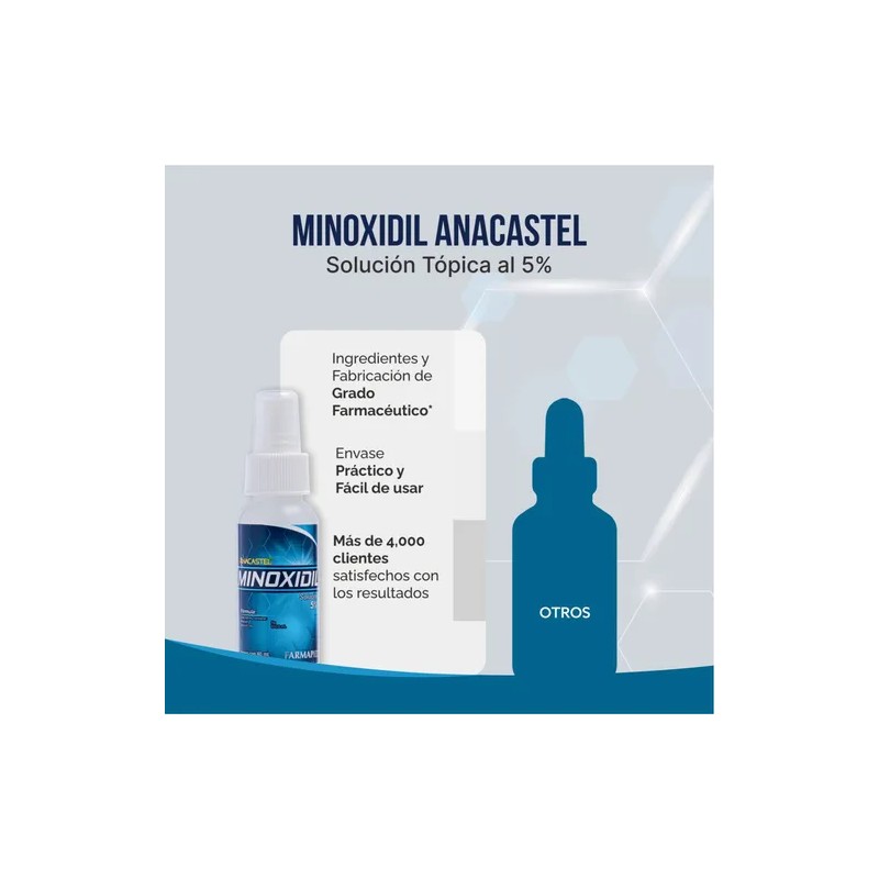 Minoxidil solución 5% es un tratamiento que ayuda a detener la calvicie y crezca más cabello.