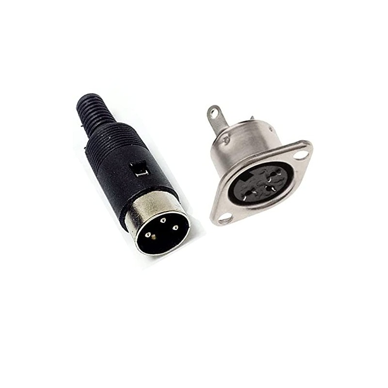 - Din Plug 3 Pin Male + Female Connector , Male Plug With Moulded Black Plastic Covers.