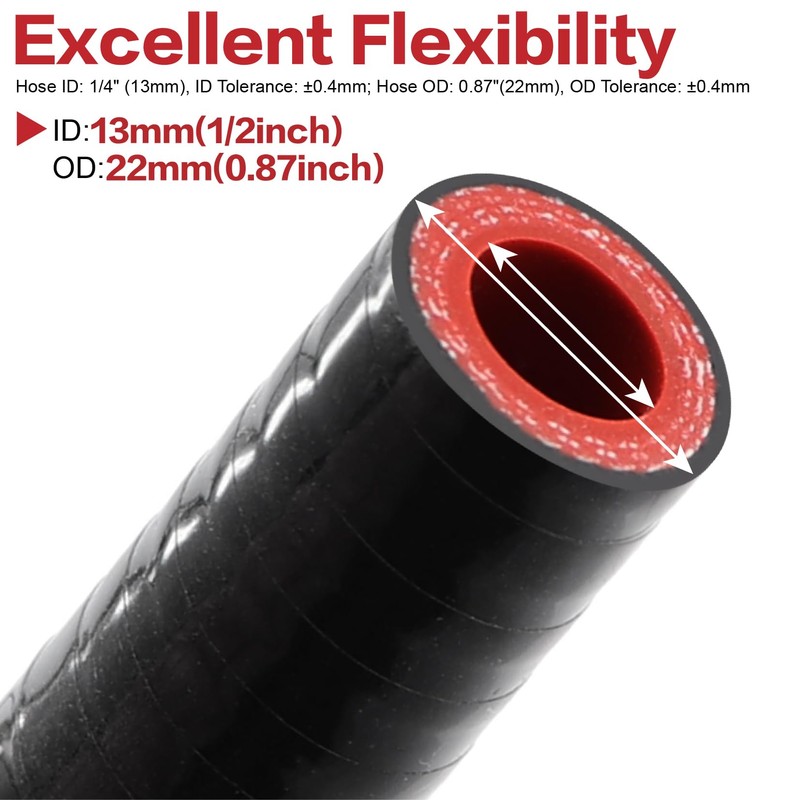 - [Size]: Hose ID: 1/2"(13mm);Wall Thickness 0.17"(4.5mm);ID Tolerance: ±0.4mm; Hose OD: 11/16"(17.5mm), OD Tolerance: ±0.4mm; Hose Length: 3.3 Feet(1m).