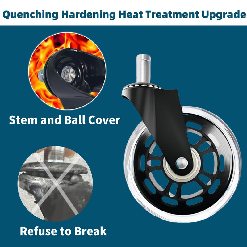 3" Polyurethane Office Chair Replacement Wheels - 5-Pack, 880LBS Heavy Duty, Noiseless & Wear-Resistant Casters (Hardwood/Carpet), Universal Fit Most Desk & Gaming Chairs, Stain-Resistant Black