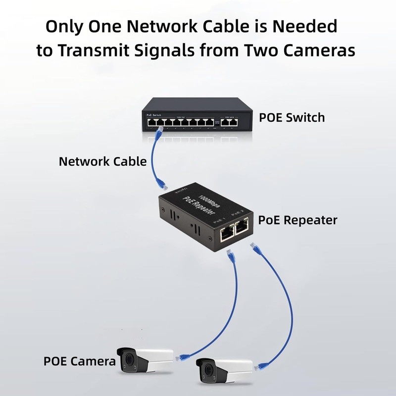 - [Ultra High Speed & Stable Data Transmission] Our POE repeater can reach a maximum speed of 1000Mbps, ensuring fast and stable data transmission.This 3-port PoE extender repeater can extend up to 2 POE devices. POE complete power: 90W. POE input power: 45-75V. POE output power: ≤30W.