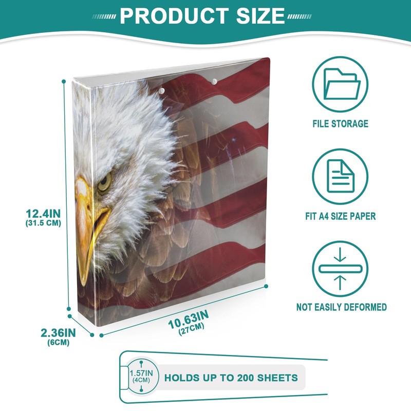 3 Ring Binder American Eagle Bald Flag 1.5 inch Binders Three Ring Binders with Clipboard Fit 8.5'' x 11'' Paper 3 Interior PVC Clear Pockets for Office Supplies