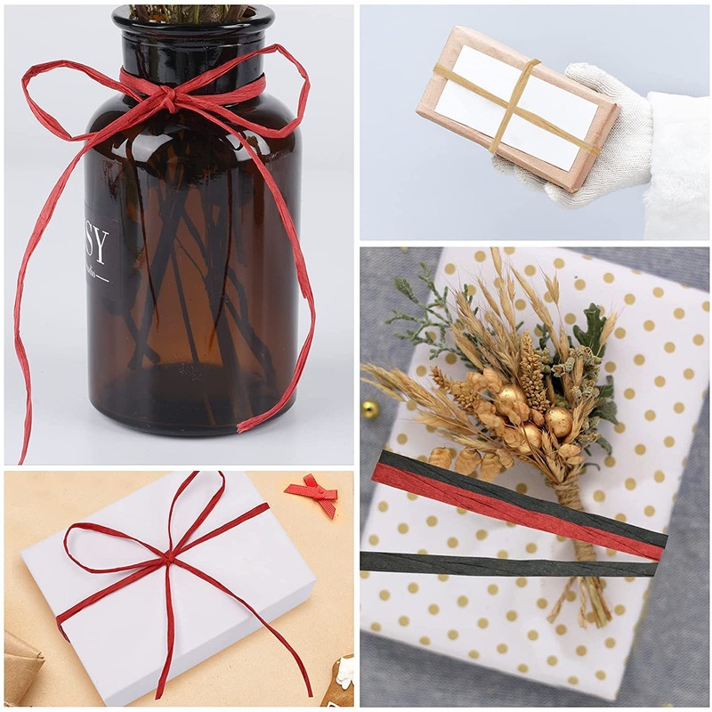 3 Rolls 50M Christmas Raffia Paper Ribbon,Natural Green Red Raffia Paper String Packing Ribbon Raffia Yarn Christmas Matte Raffia Twine Paper Recyclable Ribbons for Gift Wrapping Christmas Party