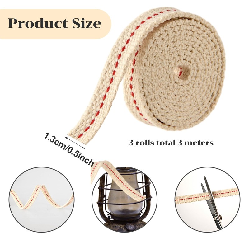 - Package Include - 3 rolls of oil lamp wicks with red stitch, there is 3.3ft long per roll, totally 10ft in length and 1/2 inch in width, sufficient quantity for you to use and replace; You can cut the oil lamp wick to your desired length.