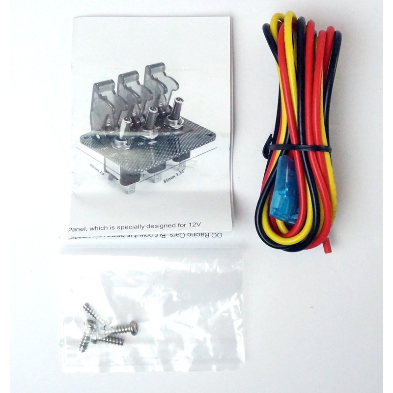 3 Row Safety Cover Aircraft 12V Toggle Switch With Indicator LED Light Carbon Fiber Painted Surface Panel, For Fog Lights, Neon Lights, Driving Lights etc. (Blue)