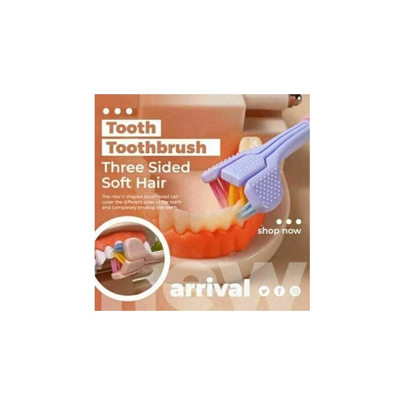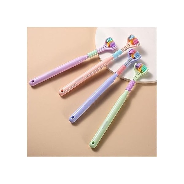 3-seitige weiche Haar-Zahnbürste in zufälliger Farbe, effektives Rundum-Design, tief und gründlich, um Zähne und Zahnfleisch zu reinigen, geeignet für Erwachsene Handzahnbürsten und Zahnbürsten, 2