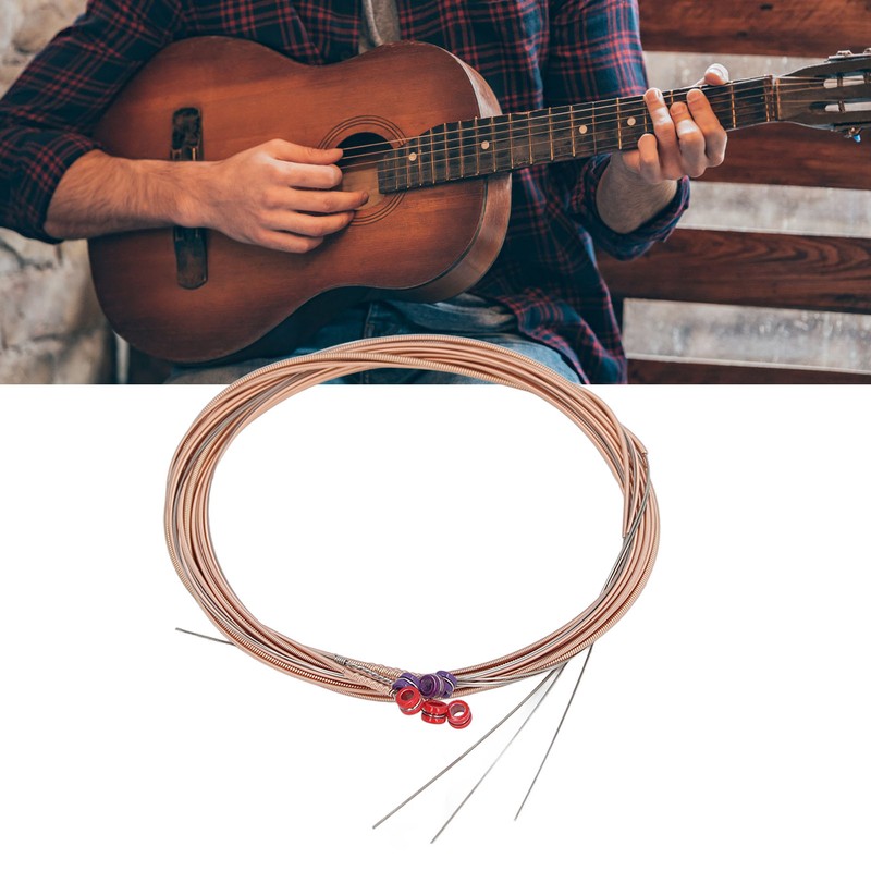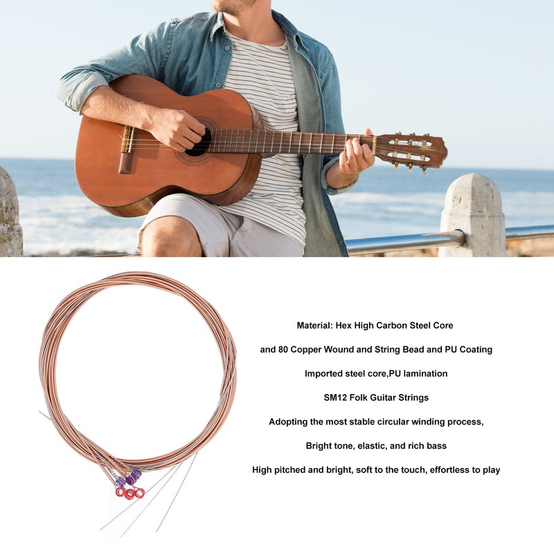 1、CRYSTAL CLEAR TONE: Our folk guitar strings produce a crisp, bright tone that is expressive and full of vitality when played. 2、HEX CORE STRUCTURE: The hex core structure of the strings allow for higher brightness and faster attack when plucking the strings. 3、FINE WORKMANSHIP: Our strings are designed with a combination of high carbon steel core, red copper wrap, string bead, and rust proof coating, ensuring reliable and worry free performance. 4、UNIFORM TENSION: Our guitar strings are engineered to provide uniform tension, resulting in consistent sound quality and improved playability. 5、LONG LASTING DURABILITY: With our premium materials and rust proof coating, our folk guitar strings are designed to withstand rigorous playing and maintain their quality and performance over time.