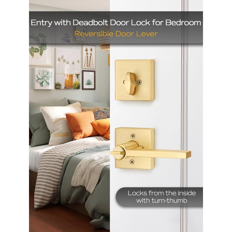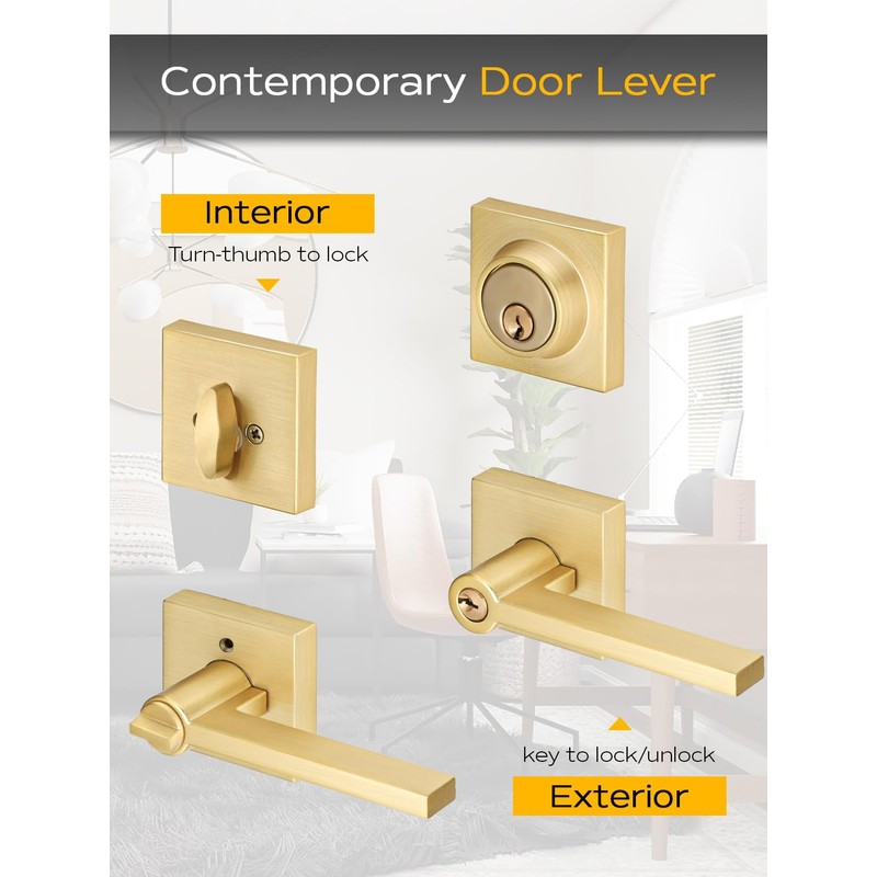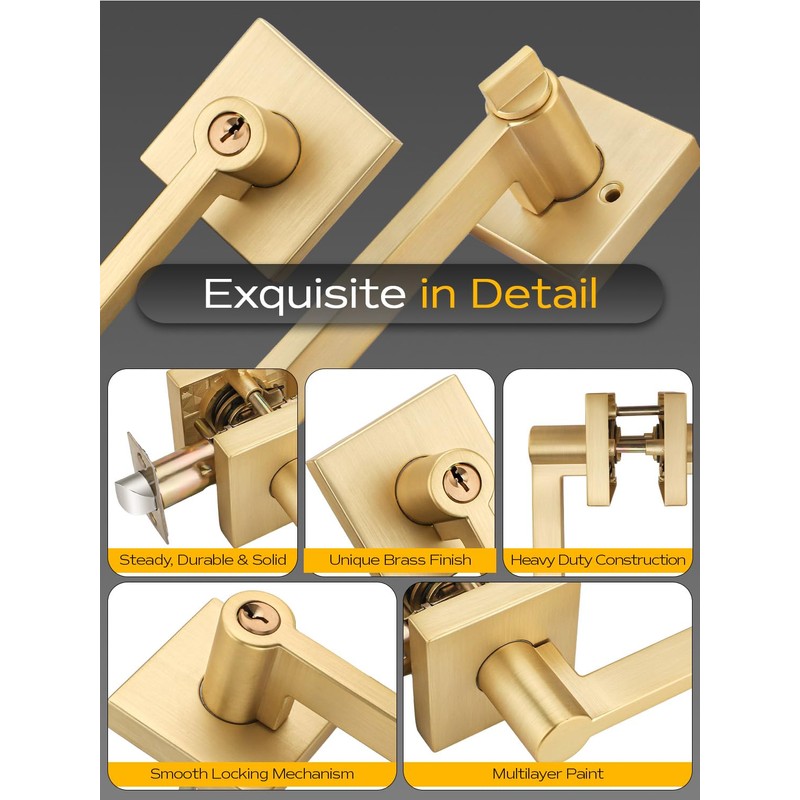 - [Durable & Chic Design] - Uniquely crafted square shaped door lever with heavy duty constructions, made of high quality zinc alloy & stainless steel, satin brass finished, modern square door lock confirm with ANSI Grade 3 Security, Exceeds 200,000 cycle. Wear-resistant and anti-corrosion, well-engineered and built to last, due to their perfect design and high quality!