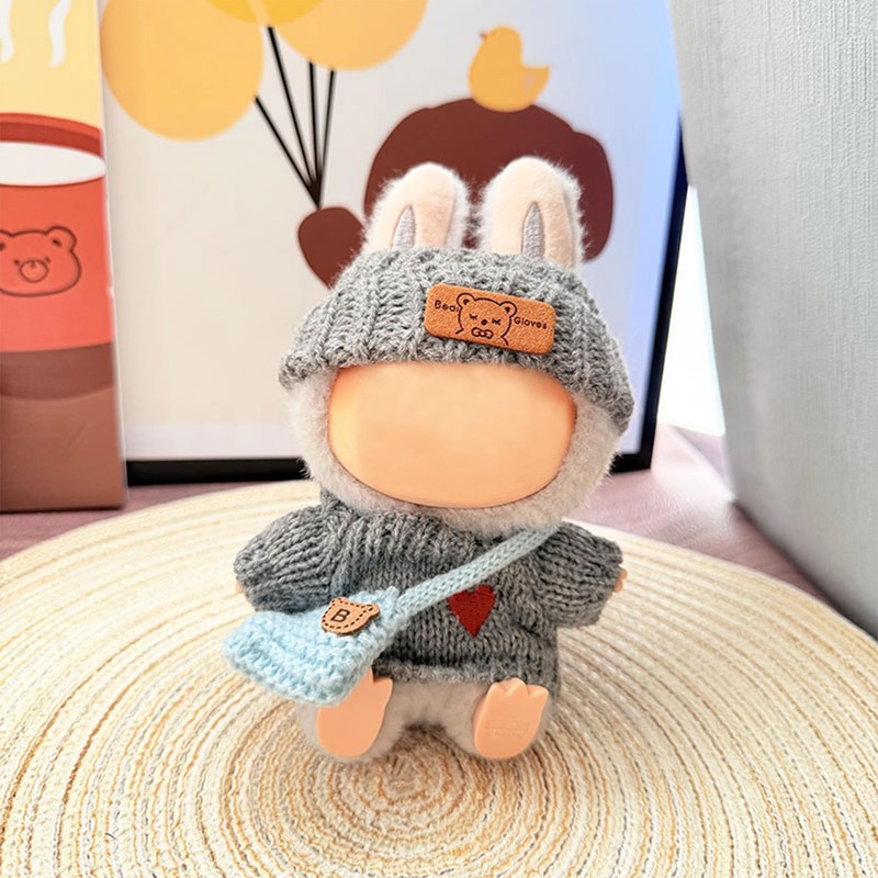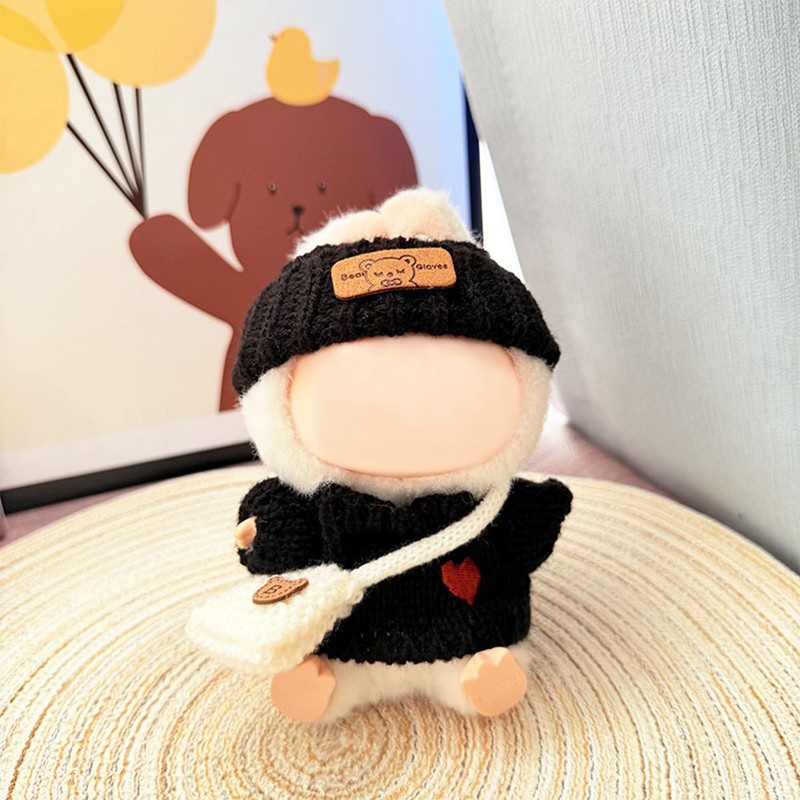 - 17cm Knit Doll Clothes Set Include: 3 Hats, 3 Sweaters and 3 Bags (Doll Not Included);