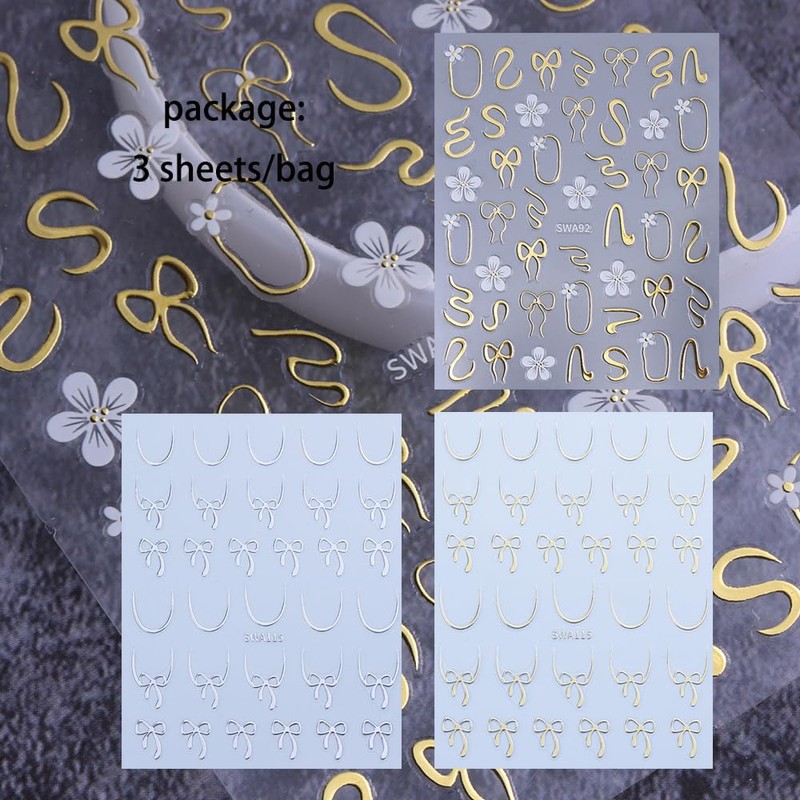 - Bow Nail Stickers➤3 sheets of bow gold silver flower french nail stickers give people an intuitive and advanced exquisite feeling, and satisfy your rich imagination of nail DIY.