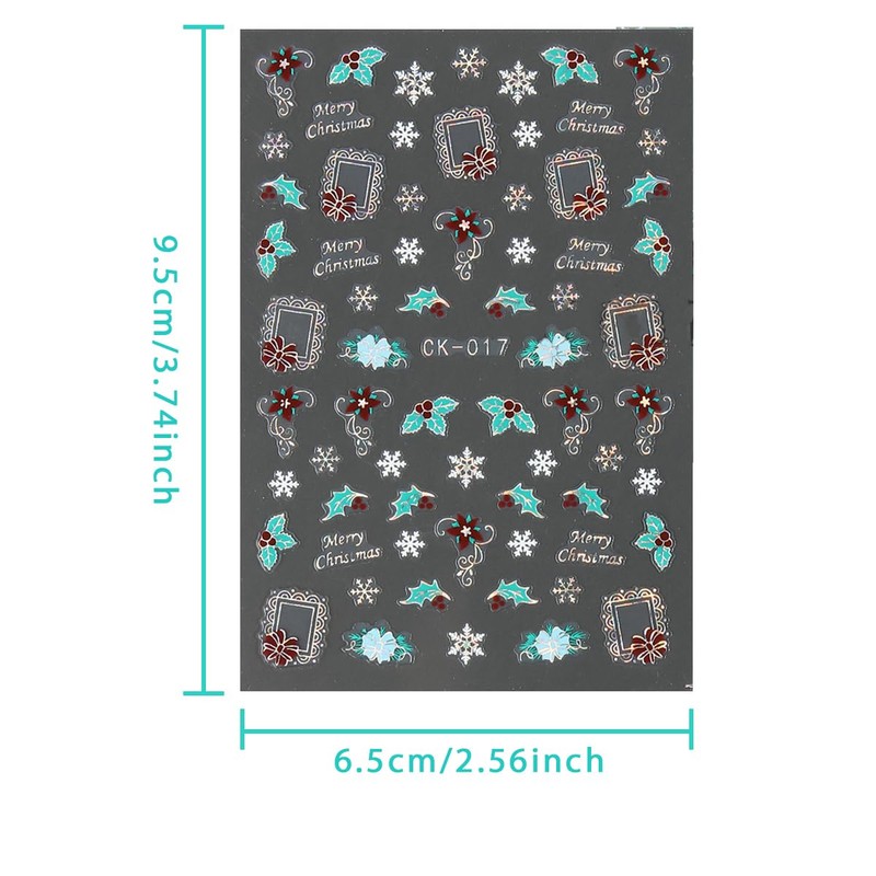• 🎅PERFECT NAIL STICKER SET: 3 sheets stickers are the perfect Christmas fashion accessories. Includes all sorts of classic Christmas-style images: Gingerbread, Santa Claus, Snowflakes and any other christmas accessories. Great to create your unique awesome Christmas nail designs. It is fun to DIY nail art with your family or friends when family gathering and party, enjoy your own shining and special look nails and the good time.