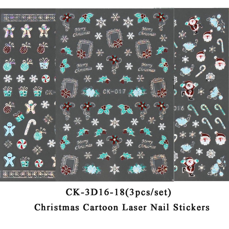 3Pcs Christmas Nail Art Stickers 3D Nail Sticker for Girls Women