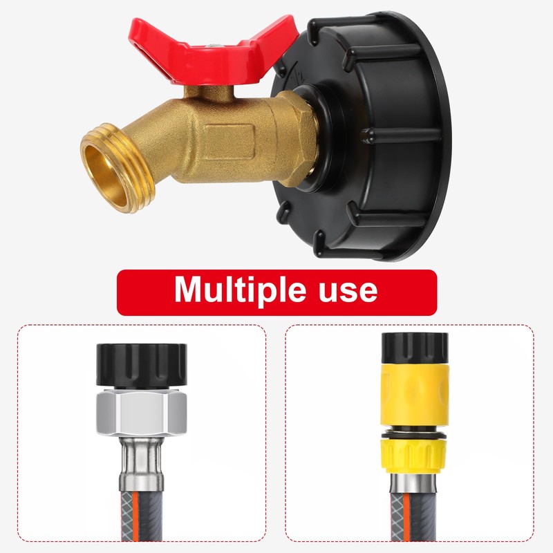 • High-quality materials: IBC Brass Garden Hose Adapters and Shutoff Valves are made of polyethylene and lead-free brass and are strong, durable, and leak-proof.