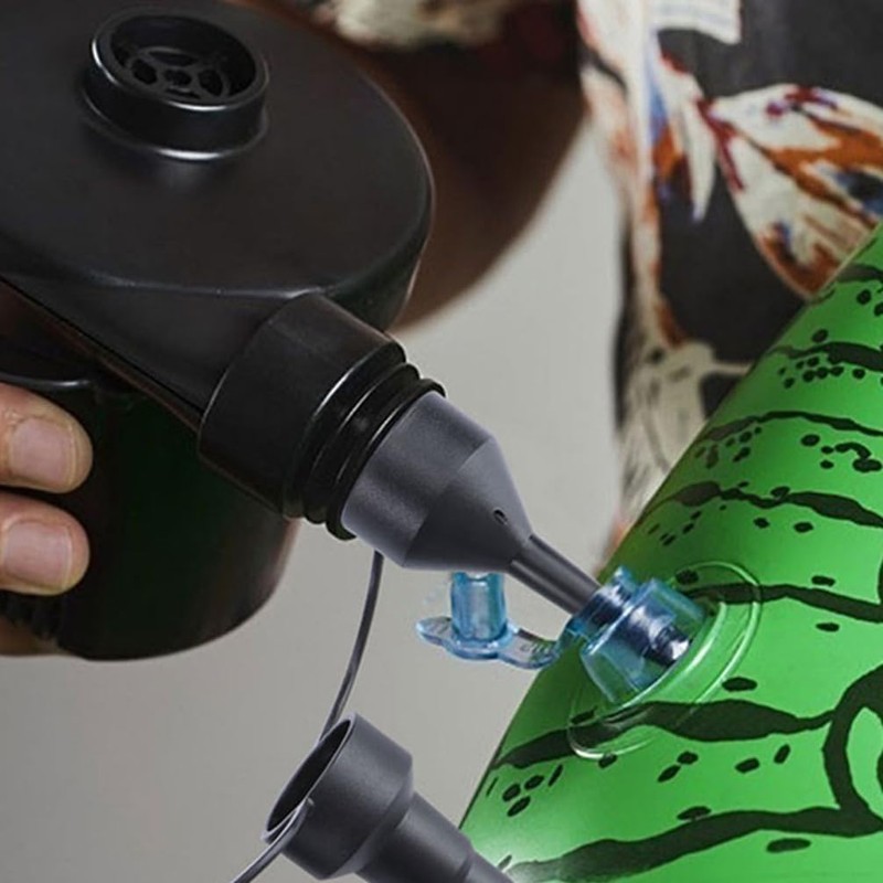 • VERSATILE SET: Includes three different sized nozzle adapters perfect for inflating various items like air mattresses, pools, and bounce houses
